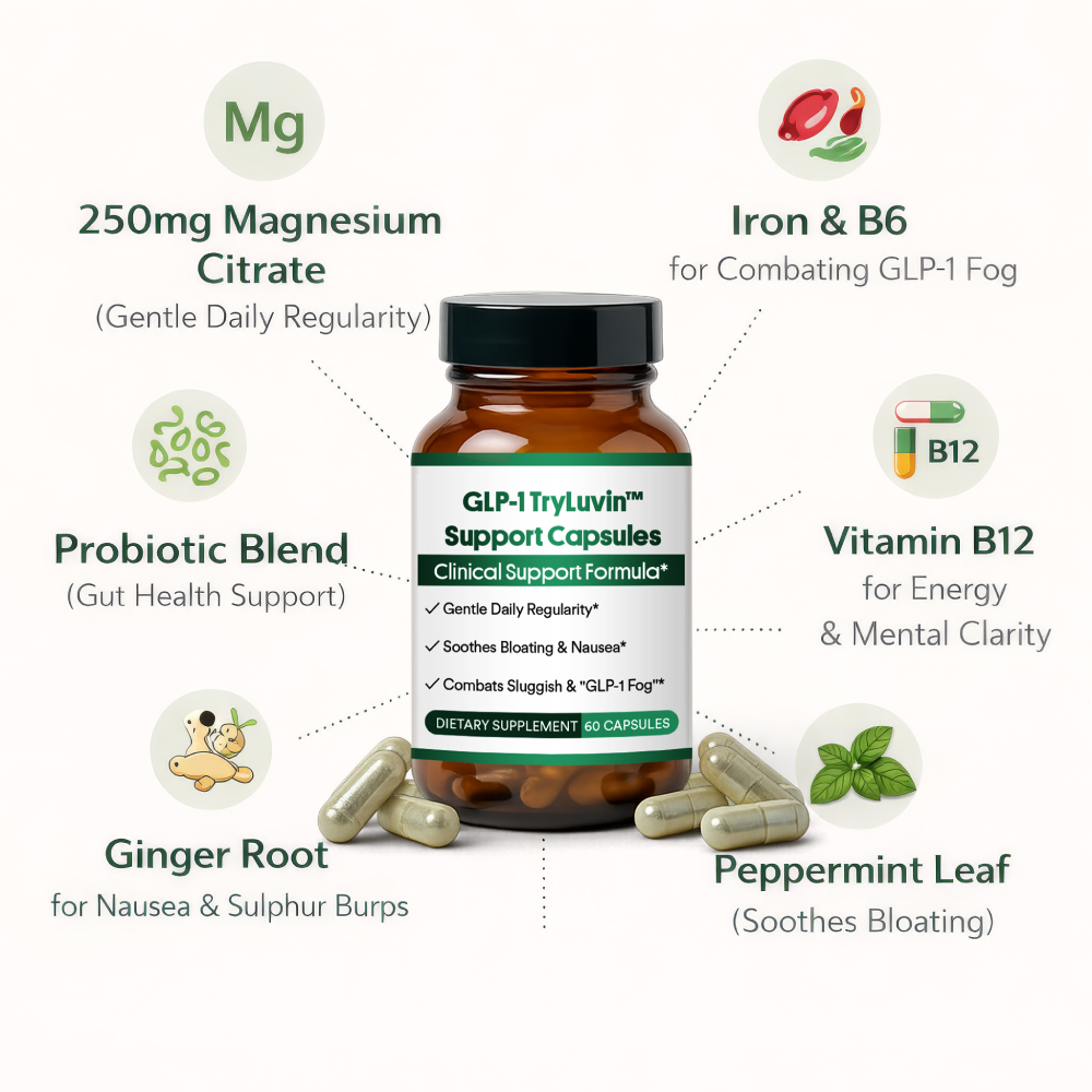 GLP-1 TryLuvin™ Support Capsules are designed to help support digestive comfort and overall wellness while using GLP-1 therapies.