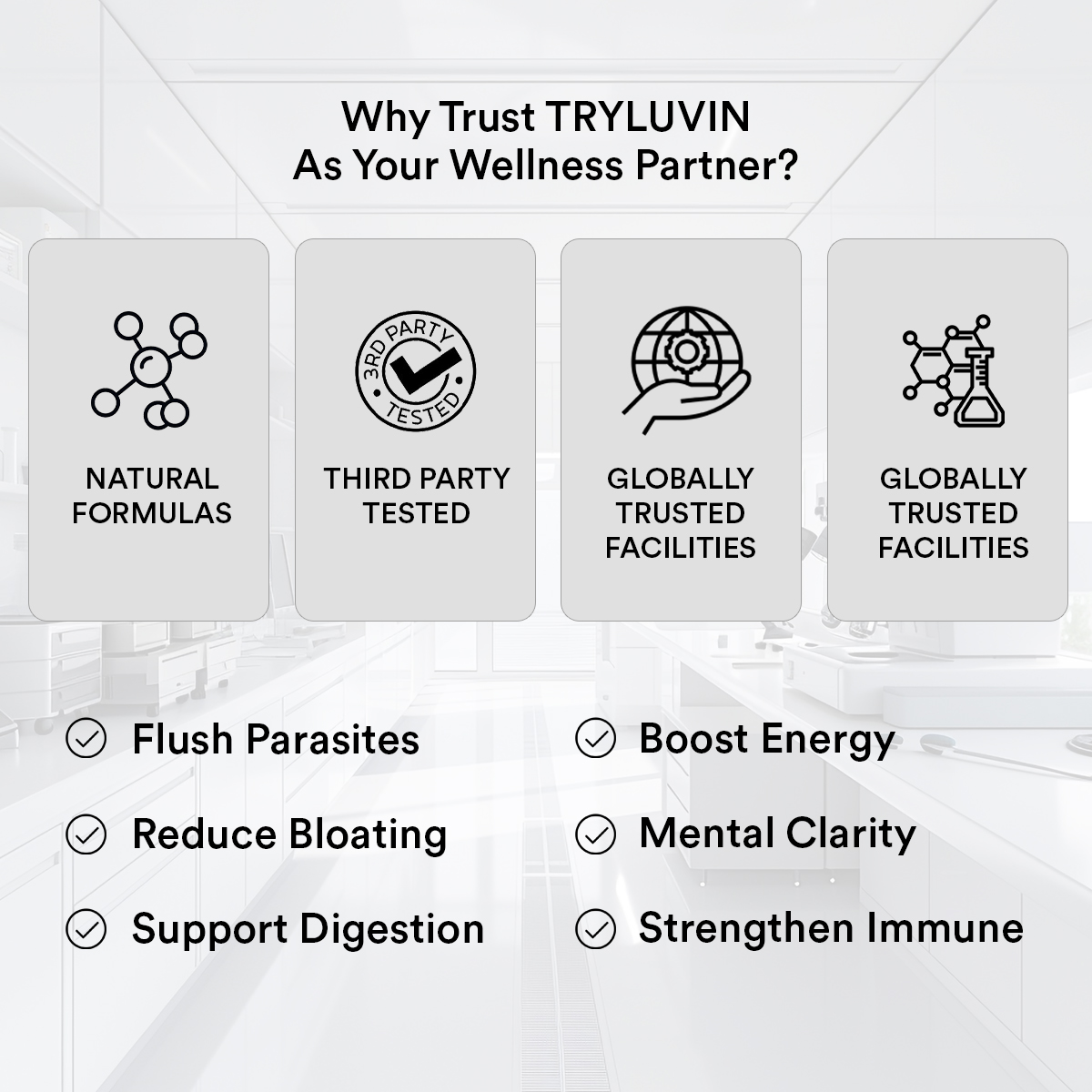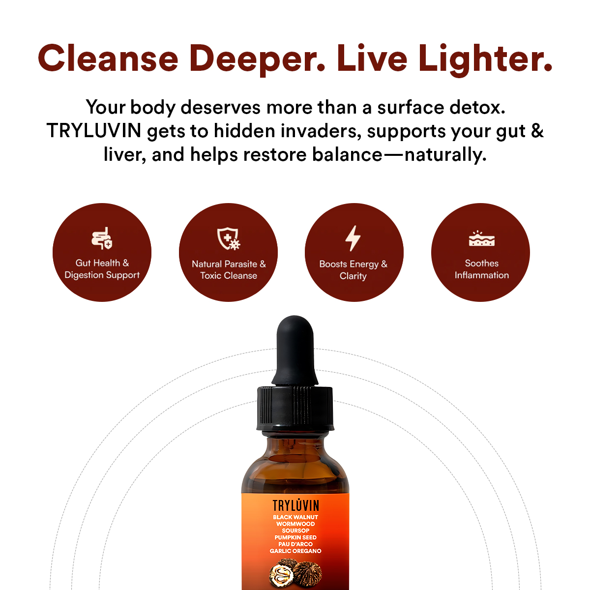 By supporting gut balance and detox pathways, TryLuvin™ Black Walnut Wormwood helps your body reset—so you can feel clearer, lighter, and more energized from the inside out.