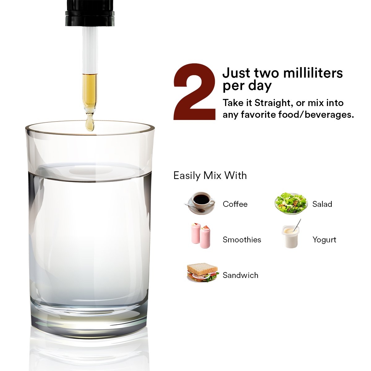 This fast-absorbing liquid formula requires no pills or capsules. Simply take 2 droppers daily for convenient, effective support as part of your wellness routine.