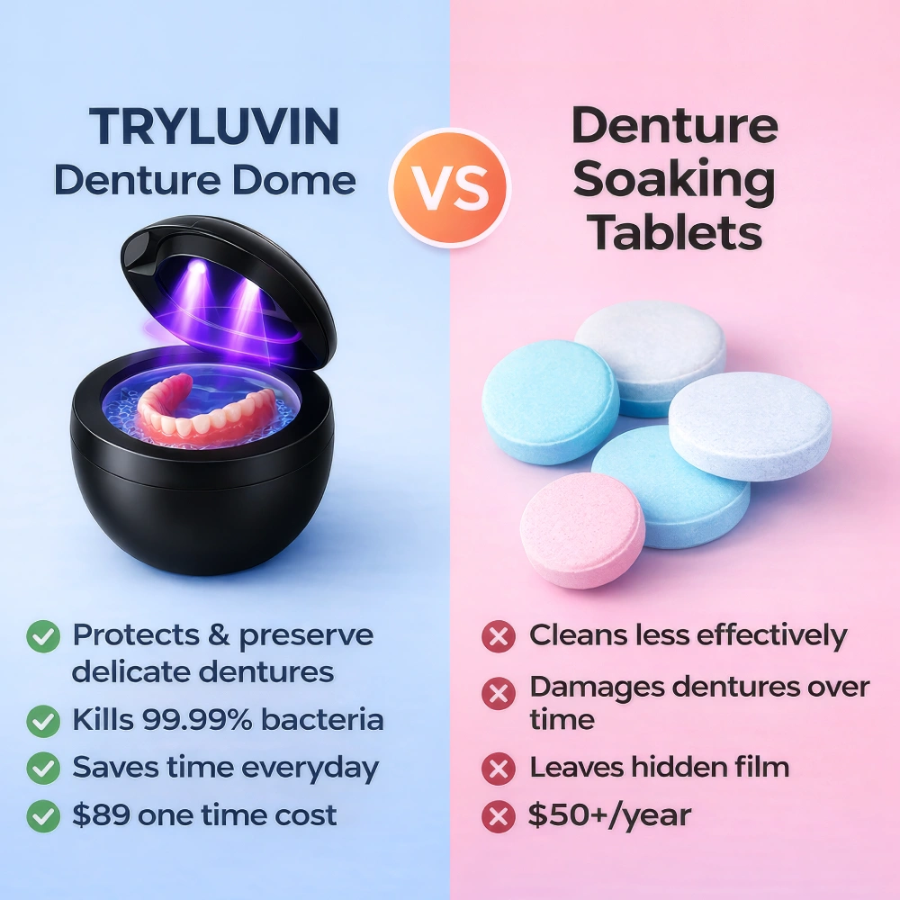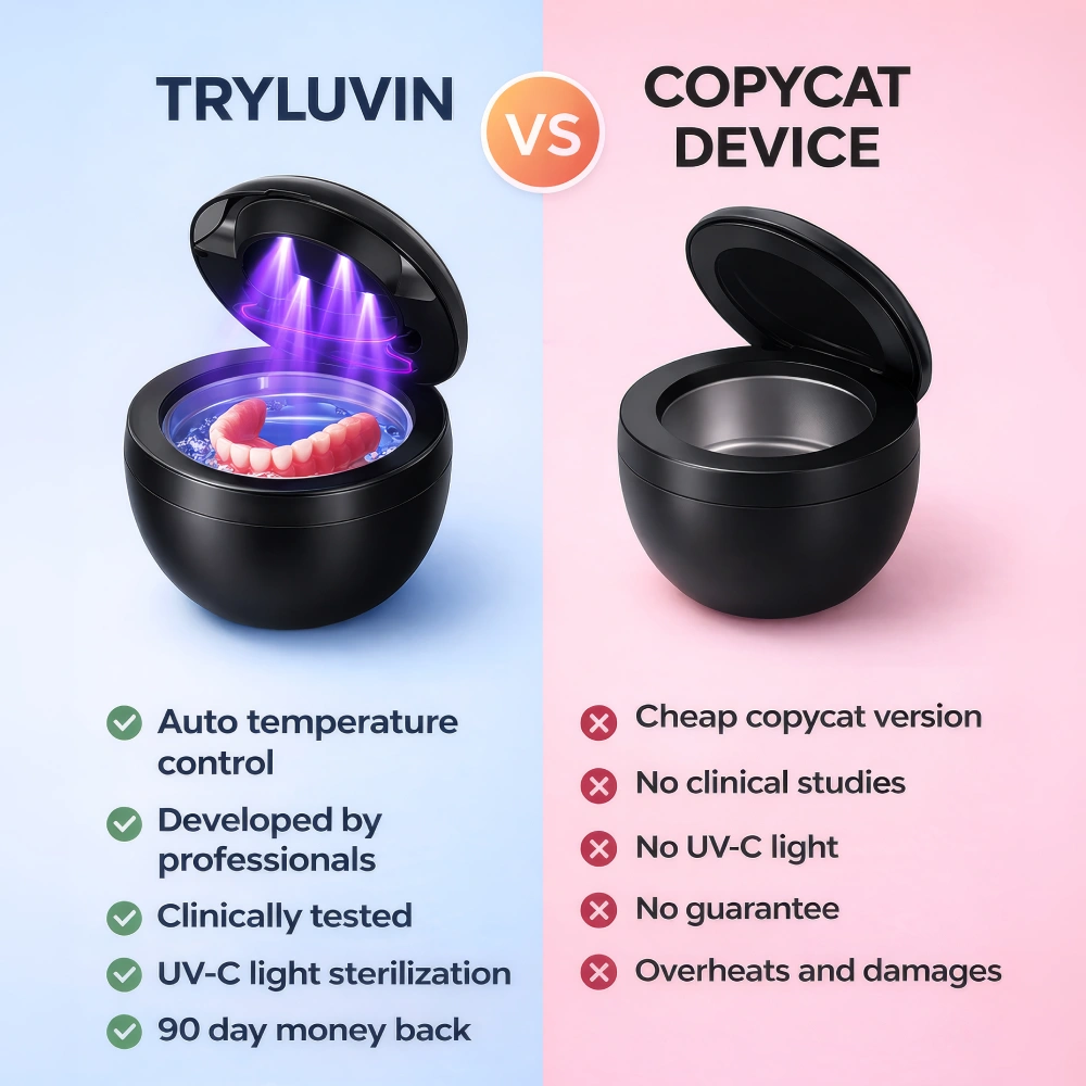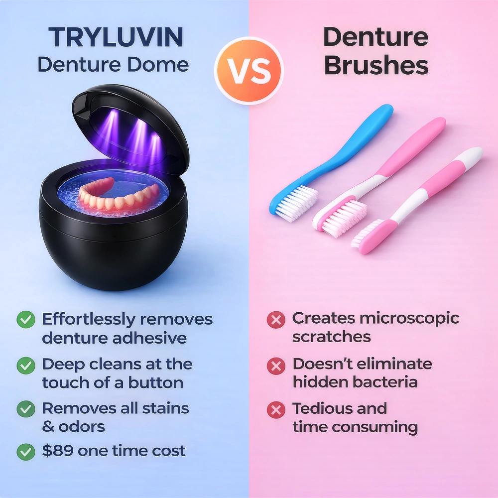 TryLuvin™ Denture Dome delivers a deep, professional-level clean designed to help remove hidden bacteria, stains, and buildup that can affect denture hygiene and oral comfort.