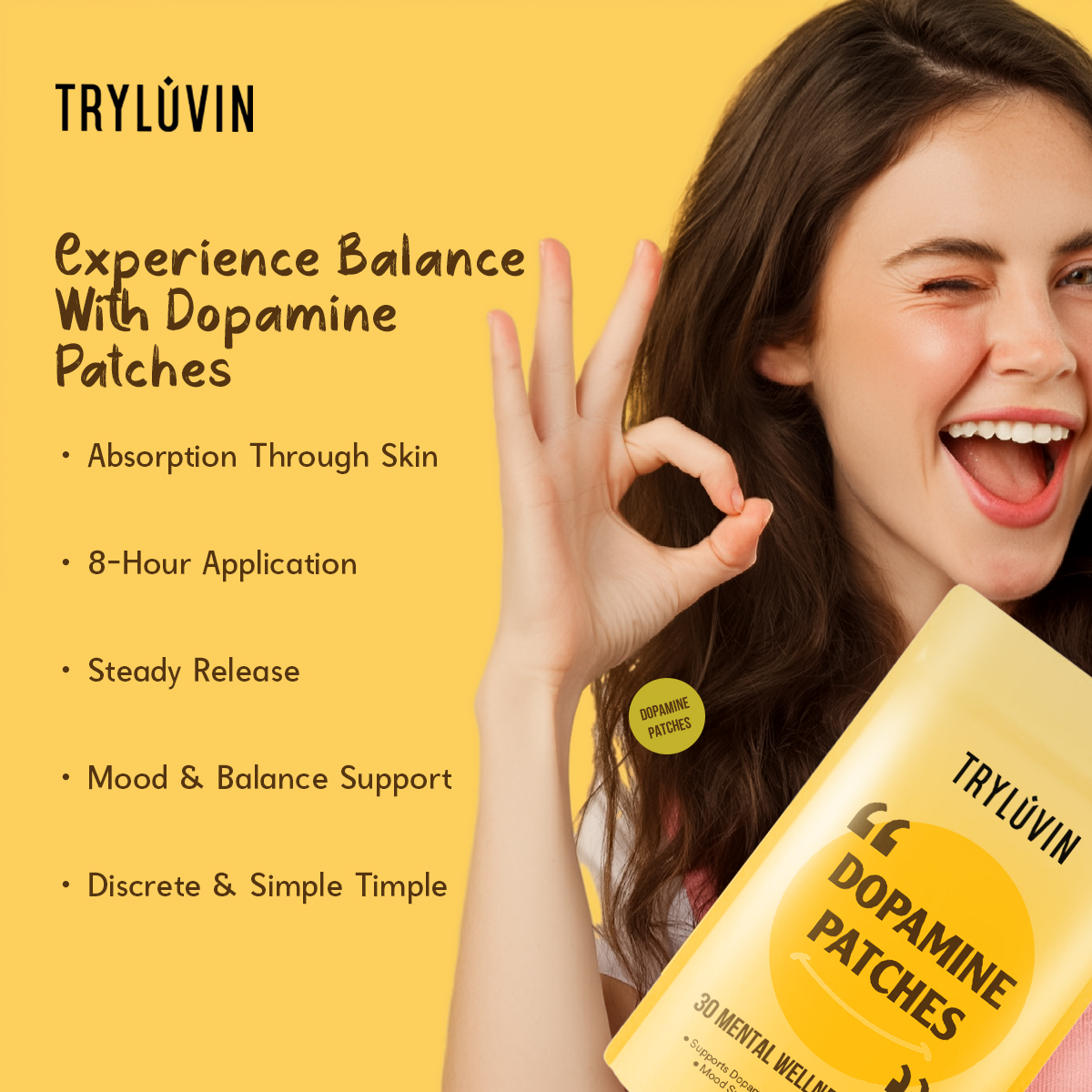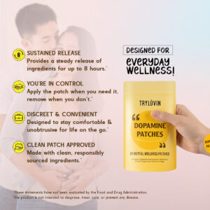 TryLuvin™ Dopamine Patches are designed to deliver supportive ingredients gradually throughout the day to help maintain mental balance and focus. Using a steady-release patch format, the ingredients are absorbed over time to support emotional well-being and mental clarity—without the sharp spikes or crashes often associated with other forms of stimulation.