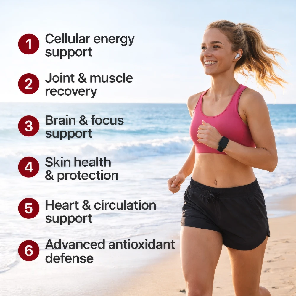 Because of this comprehensive cellular support, the benefits of astaxanthin build gradually over time, supporting long-term health, energy, and resilience.